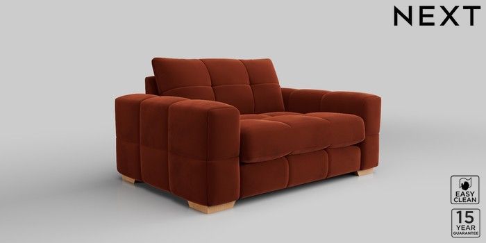 7.2.10 Brooke Deep Sit 2 Seater Small Sofa Plush Velvet Easy Clean Ginger Orange Large Square Angle - Light | Made Click here to use our website with more accessibility support, for example screen readers