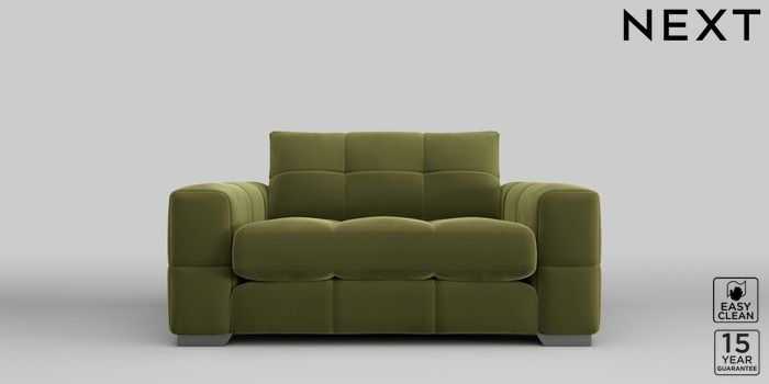 7.2.10 Brooke Deep Sit 2 Seater Small Sofa Plush Velvet Easy Clean Mid Olive Green Large Square Angle - Gunmetal | Made Click here to use our website with more accessibility support, for example screen readers