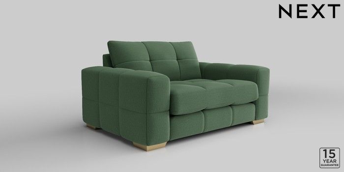 7.2.10 Brooke Deep Sit 2 Seater Small Sofa Relaxed Linen Look Dark Green Large Square Angle - Brushed Brass | Made Click here to use our website with more accessibility support, for example screen readers