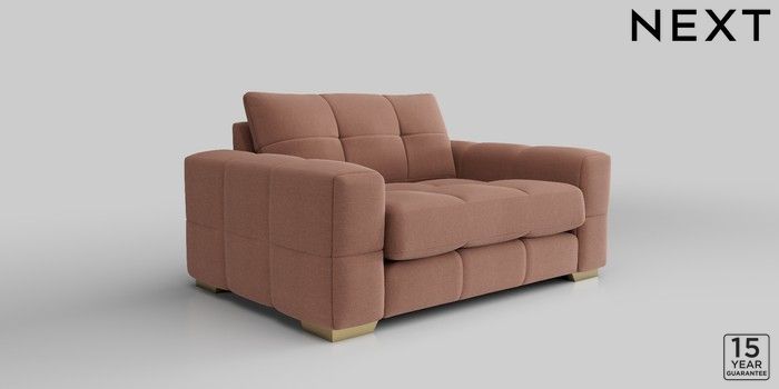 7.2.10 Brooke Deep Sit 2 Seater Small Sofa Relaxed Linen Look Light Rust Brown Large Square Angle - Brushed Brass | Made Click here to use our website with more accessibility support, for example screen readers