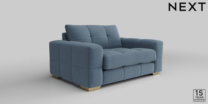 7.2.10 Brooke Deep Sit 2 Seater Small Sofa Relaxed Linen Look Mid Blue Large Square Angle - Brushed Brass | Made Click here to use our website with more accessibility support, for example screen readers