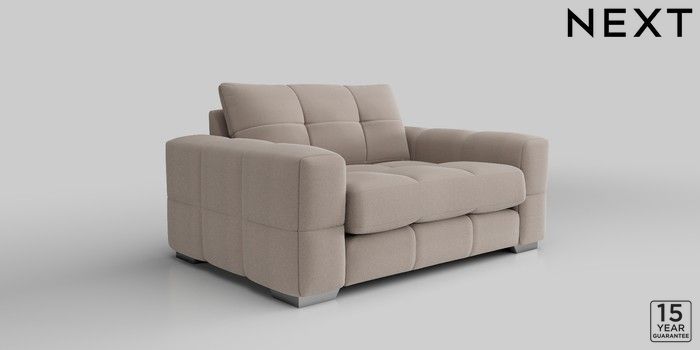 7.2.10 Brooke Deep Sit 2 Seater Small Sofa Relaxed Linen Look Mid Natural Large Square Angle - Chrome Metal | Made Click here to use our website with more accessibility support, for example screen readers