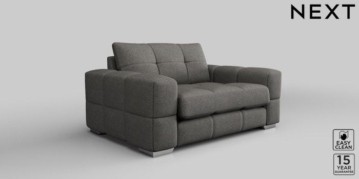 7.2.10 Brooke Deep Sit 2 Seater Small Sofa Tweedy Blend Easy Clean Dark Grey Large Square Angle - Chrome Metal | Made Click here to use our website with more accessibility support, for example screen readers