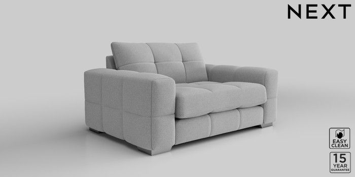 7.2.10 Brooke Deep Sit 2 Seater Small Sofa Tweedy Blend Easy Clean Light Silver Grey Large Square Angle - Chrome Metal | Made Click here to use our website with more accessibility support, for example screen readers