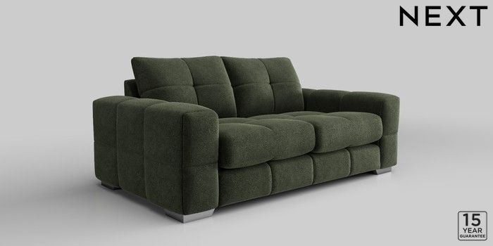 7.2.10 Brooke Deep Sit 3 Seater Small Sofa Boucle Chenille Dark Moss Green Large Square Angle - Chrome Metal | Made Click here to use our website with more accessibility support, for example screen readers