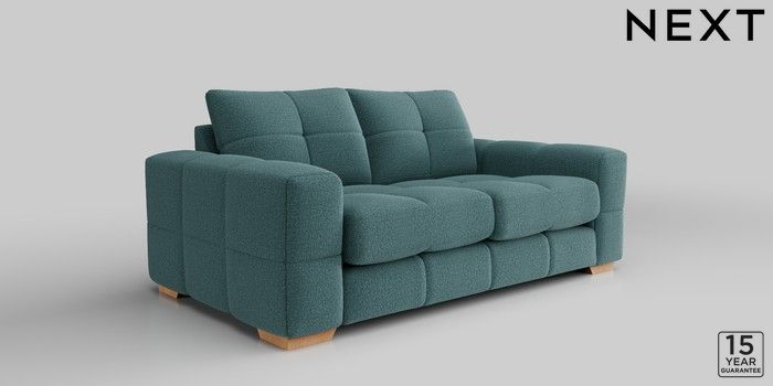 7.2.10 Brooke Deep Sit 3 Seater Small Sofa Chunky Chenille Mid Teal Green Large Square Angle - Light | Made Click here to use our website with more accessibility support, for example screen readers