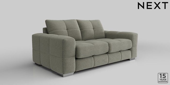 7.2.10 Brooke Deep Sit 3 Seater Small Sofa Chunky Marl Light Olive Green Large Square Angle - Chrome Metal | Made Click here to use our website with more accessibility support, for example screen readers