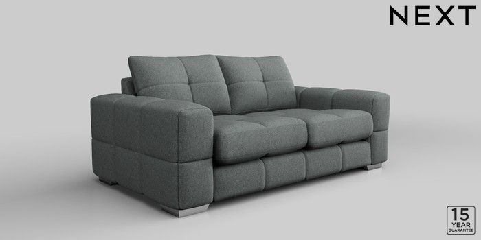 7.2.10 Brooke Deep Sit 3 Seater Small Sofa Chunky Weave Mid Grey Large Square Angle - Chrome Metal | Made Click here to use our website with more accessibility support, for example screen readers