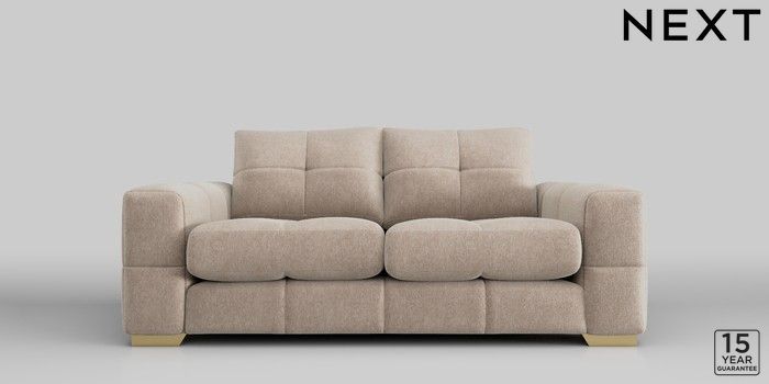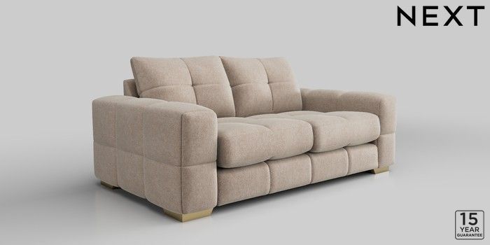 7.2.10 Brooke Deep Sit 3 Seater Small Sofa Cotswold Chenille Light Natural Large Square Angle - Brushed Brass | Made Click here to use our website with more accessibility support, for example screen readers