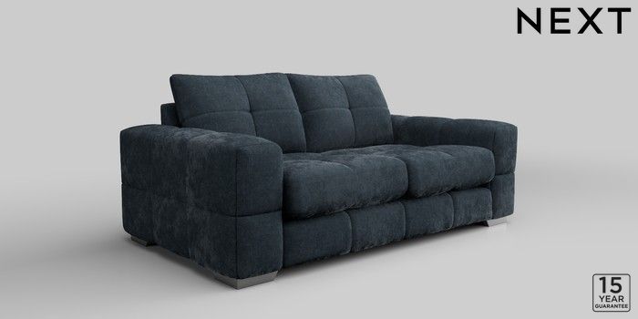 7.2.10 Brooke Deep Sit 3 Seater Small Sofa Distressed Velour Midnight Blue Large Square Angle - Gunmetal | Made Click here to use our website with more accessibility support, for example screen readers