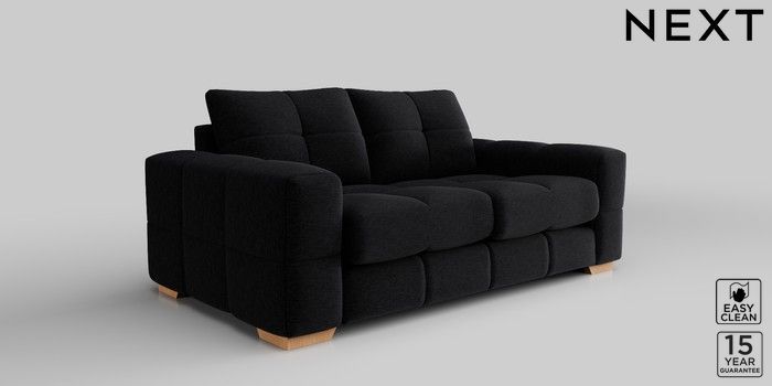 7.2.10 Brooke Deep Sit 3 Seater Small Sofa Fine Chenille Easy Clean Black Large Square Angle - Light | Made Click here to use our website with more accessibility support, for example screen readers