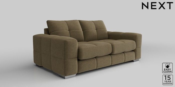 7.2.10 Brooke Deep Sit 3 Seater Small Sofa Fine Chenille Easy Clean Dark Moss Green Large Square Angle - Chrome Metal | Made Click here to use our website with more accessibility support, for example screen readers