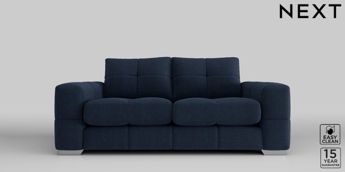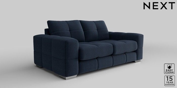 7.2.10 Brooke Deep Sit 3 Seater Small Sofa Fine Chenille Easy Clean Dark Navy Blue Large Square Angle - Chrome Metal | Made Click here to use our website with more accessibility support, for example screen readers