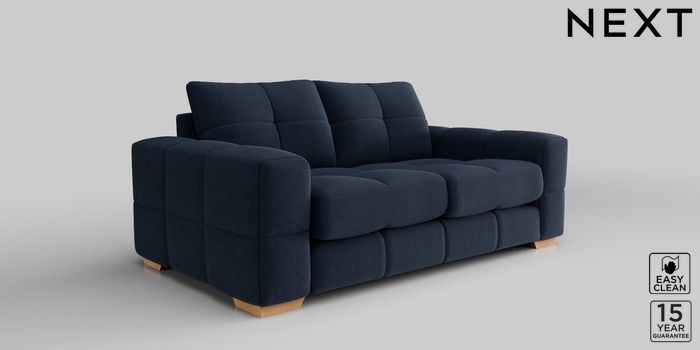 7.2.10 Brooke Deep Sit 3 Seater Small Sofa Fine Chenille Easy Clean Dark Navy Blue Large Square Angle - Light | Made Click here to use our website with more accessibility support, for example screen readers