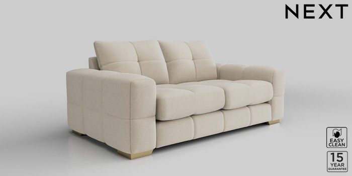 7.2.10 Brooke Deep Sit 3 Seater Small Sofa Fine Chenille Easy Clean Oyster Large Square Angle - Brushed Brass | Made Click here to use our website with more accessibility support, for example screen readers