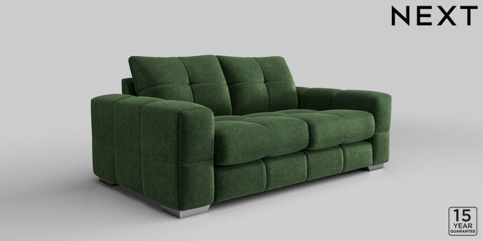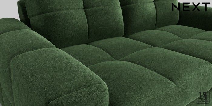 7.2.10 Brooke Deep Sit 3 Seater Small Sofa Luxe Chenille Dark Green Large Square Angle - Chrome Metal | Made Click here to use our website with more accessibility support, for example screen readers