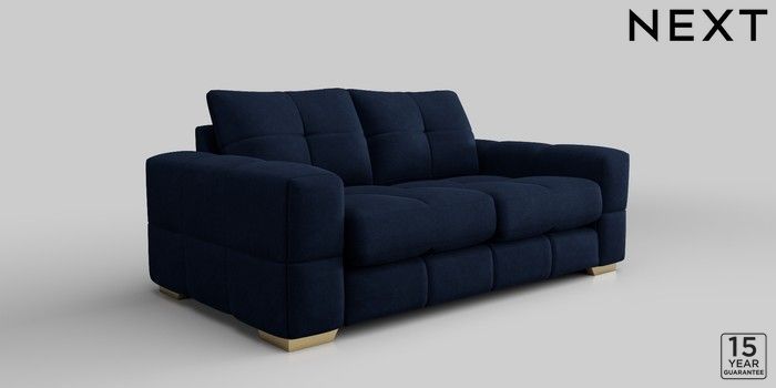 7.2.10 Brooke Deep Sit 3 Seater Small Sofa Luxe Chenille Navy Blue Large Square Angle - Brushed Brass | Made Click here to use our website with more accessibility support, for example screen readers