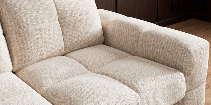 7.2.10 Brooke Deep Sit 3 Seater Small Sofa Multi Weave Mid Natural Large Square Angle - Brushed Brass | Made Click here to use our website with more accessibility support, for example screen readers