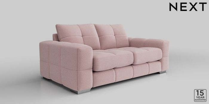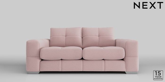 7.2.10 Brooke Deep Sit 3 Seater Small Sofa Natural Mix Light Rose Pink Large Square Angle - Chrome Metal | Made Click here to use our website with more accessibility support, for example screen readers