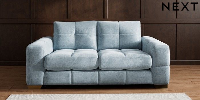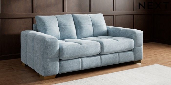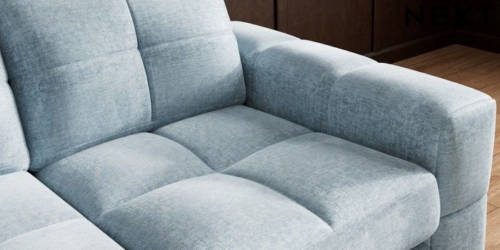 7.2.10 Brooke Deep Sit 3 Seater Small Sofa Plush Chenille Light Blue Large Square Angle - Brushed Brass | Made Click here to use our website with more accessibility support, for example screen readers