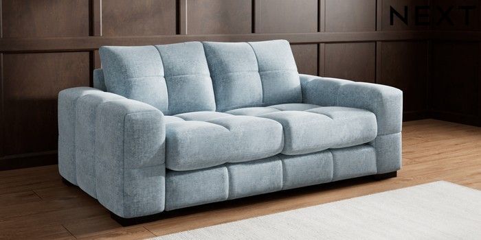 7.2.10 Brooke Deep Sit 3 Seater Small Sofa Plush Chenille Light Blue Large Square Angle - Dark | Made Click here to use our website with more accessibility support, for example screen readers