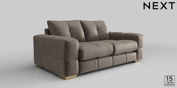 7.2.10 Brooke Deep Sit 3 Seater Small Sofa Plush Chenille Mink Brown Large Square Angle - Brushed Brass | Made Click here to use our website with more accessibility support, for example screen readers
