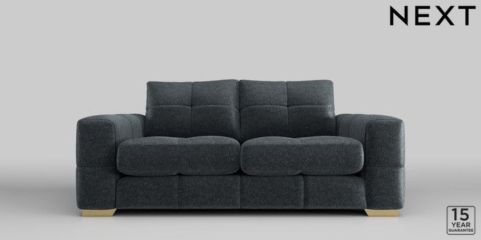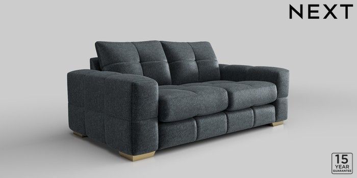 7.2.10 Brooke Deep Sit 3 Seater Small Sofa Plush Chenille Slate Blue Large Square Angle - Brushed Brass | Made Click here to use our website with more accessibility support, for example screen readers