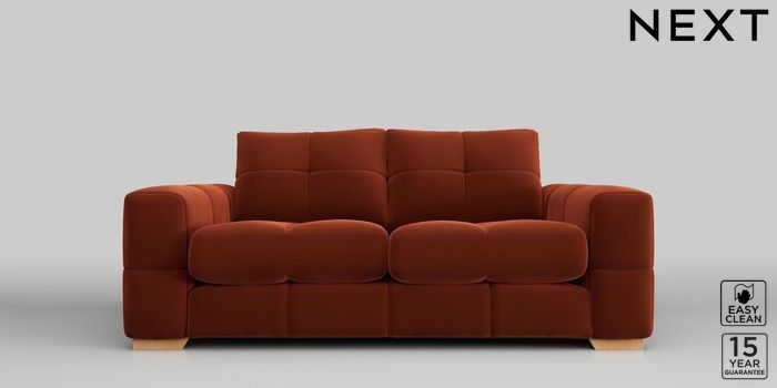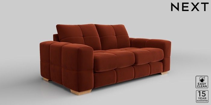 7.2.10 Brooke Deep Sit 3 Seater Small Sofa Plush Velvet Easy Clean Ginger Orange Large Square Angle - Light | Made Click here to use our website with more accessibility support, for example screen readers