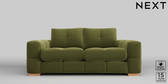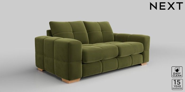 7.2.10 Brooke Deep Sit 3 Seater Small Sofa Plush Velvet Easy Clean Mid Olive Green Large Square Angle - Light | Made Click here to use our website with more accessibility support, for example screen readers