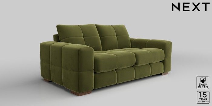 7.2.10 Brooke Deep Sit 3 Seater Small Sofa Plush Velvet Easy Clean Mid Olive Green Large Square Angle - Mid | Made Click here to use our website with more accessibility support, for example screen readers