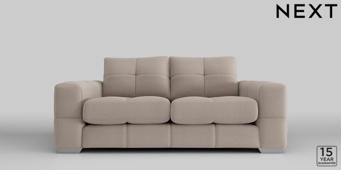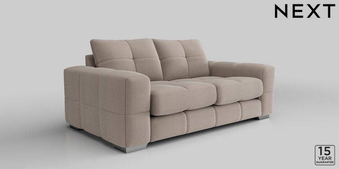 7.2.10 Brooke Deep Sit 3 Seater Small Sofa Relaxed Linen Look Mid Natural Large Square Angle - Chrome Metal | Made Click here to use our website with more accessibility support, for example screen readers