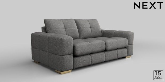 7.2.10 Brooke Deep Sit 3 Seater Small Sofa Tweedy Chenille Dark Grey Large Square Angle - Brushed Brass | Made Click here to use our website with more accessibility support, for example screen readers