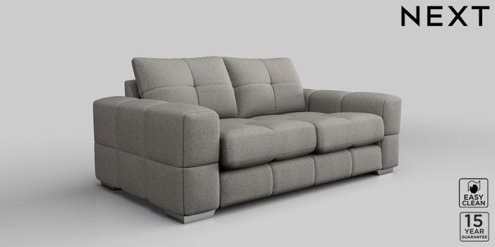7.2.10 Brooke Deep Sit 3 Seater Small Sofa Woven Chenille Easy Clean Light Grey Large Square Angle - Chrome Metal | Made Click here to use our website with more accessibility support, for example screen readers