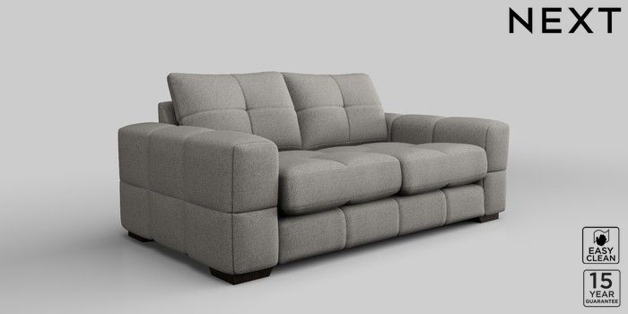 7.2.10 Brooke Deep Sit 3 Seater Small Sofa Woven Chenille Easy Clean Light Grey Large Square Angle - Dark | Made Click here to use our website with more accessibility support, for example screen readers