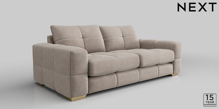 7.2.10 Brooke Deep Sit 3 Seater Sofa Boucle Chenille Light Natural Large Square Angle - Brushed Brass | Made Click here to use our website with more accessibility support, for example screen readers