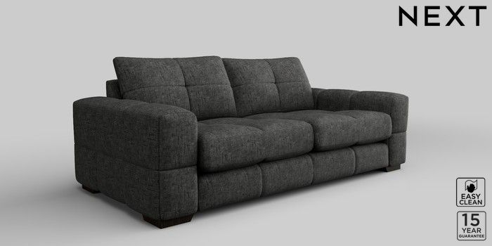 7.2.10 Brooke Deep Sit 3 Seater Sofa Boucle Weave Easy Clean Charcoal Grey Large Square Angle - Dark | Made Click here to use our website with more accessibility support, for example screen readers