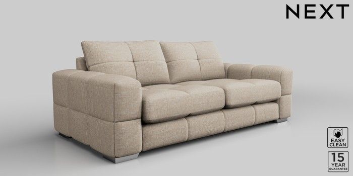 7.2.10 Brooke Deep Sit 3 Seater Sofa Boucle Weave Easy Clean Dark Natural Large Square Angle - Chrome Metal | Made Click here to use our website with more accessibility support, for example screen readers