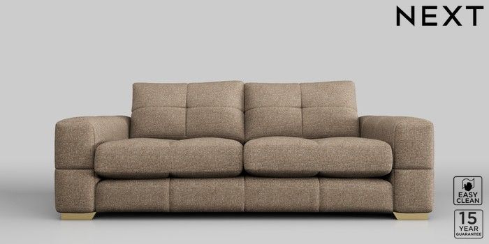 7.2.10 Brooke Deep Sit 3 Seater Sofa Chunky Boucle Easy Clean Mid Natural Large Square Angle - Brushed Brass | Made Click here to use our website with more accessibility support, for example screen readers