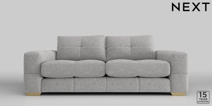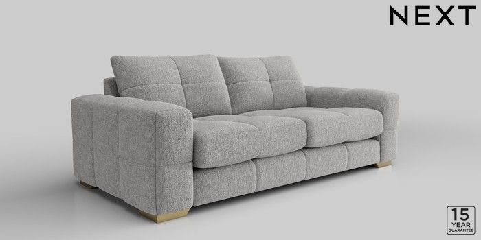 7.2.10 Brooke Deep Sit 3 Seater Sofa Chunky Chenille Light Grey Large Square Angle - Brushed Brass | Made Click here to use our website with more accessibility support, for example screen readers