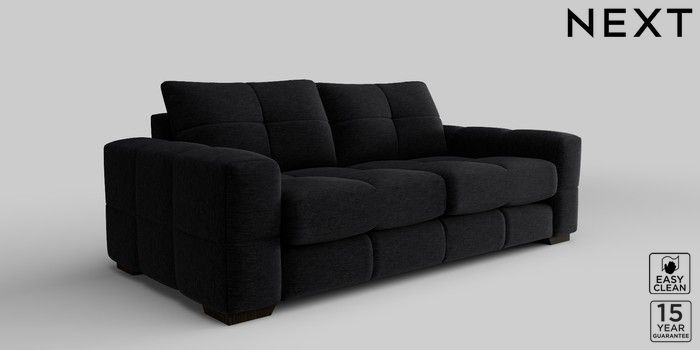 7.2.10 Brooke Deep Sit 3 Seater Sofa Fine Chenille Easy Clean Black Large Square Angle - Dark | Made Click here to use our website with more accessibility support, for example screen readers