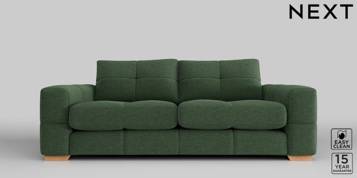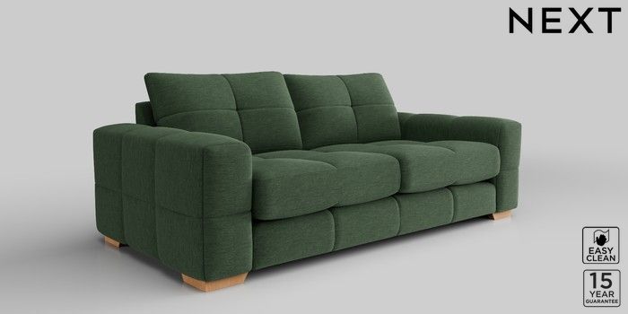 7.2.10 Brooke Deep Sit 3 Seater Sofa Fine Chenille Easy Clean Mid Khaki Green Large Square Angle - Light | Made Click here to use our website with more accessibility support, for example screen readers