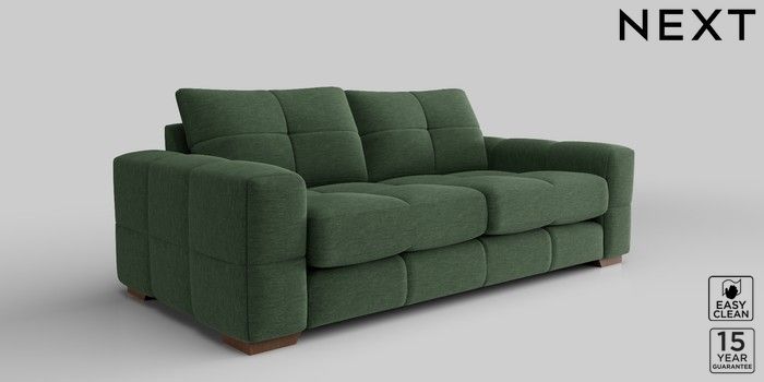 7.2.10 Brooke Deep Sit 3 Seater Sofa Fine Chenille Easy Clean Mid Khaki Green Large Square Angle - Mid | Made Click here to use our website with more accessibility support, for example screen readers