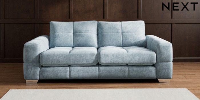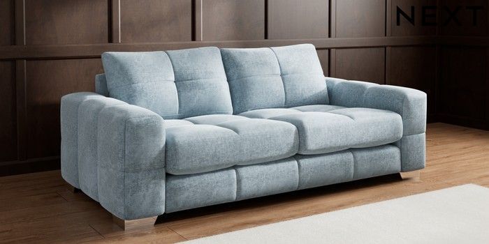 7.2.10 Brooke Deep Sit 3 Seater Sofa Plush Chenille Light Blue Large Square Angle - Chrome Metal | Made Click here to use our website with more accessibility support, for example screen readers
