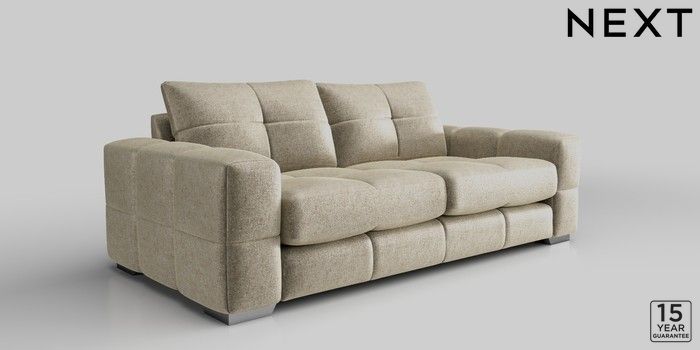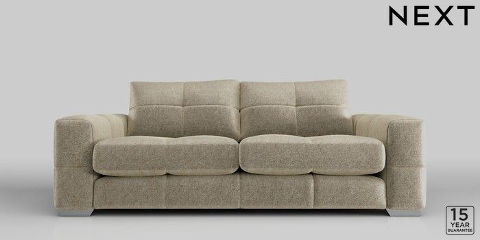 7.2.10 Brooke Deep Sit 3 Seater Sofa Plush Chenille Light Natural Large Square Angle - Chrome Metal | Made Click here to use our website with more accessibility support, for example screen readers