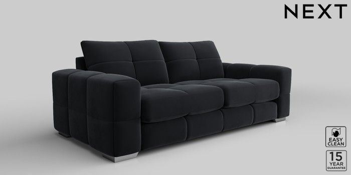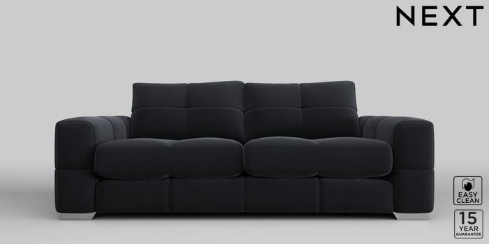 7.2.10 Brooke Deep Sit 3 Seater Sofa Plush Velvet Easy Clean Charcoal Grey Large Square Angle - Chrome Metal | Made Click here to use our website with more accessibility support, for example screen readers
