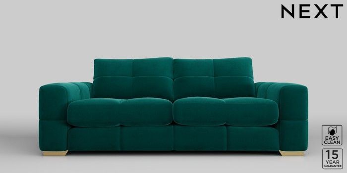 7.2.10 Brooke Deep Sit 3 Seater Sofa Plush Velvet Easy Clean Juniper Green Large Square Angle - Brushed Brass | Made Click here to use our website with more accessibility support, for example screen readers