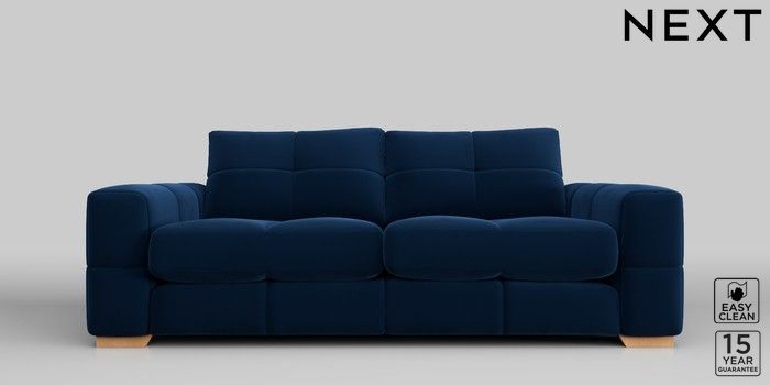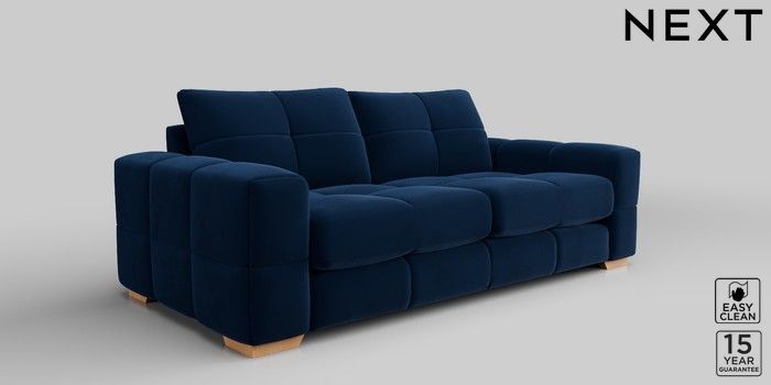 7.2.10 Brooke Deep Sit 3 Seater Sofa Plush Velvet Easy Clean Navy Blue Large Square Angle - Light | Made Click here to use our website with more accessibility support, for example screen readers