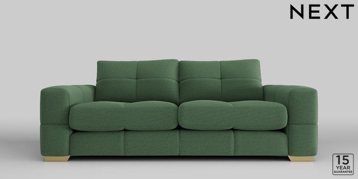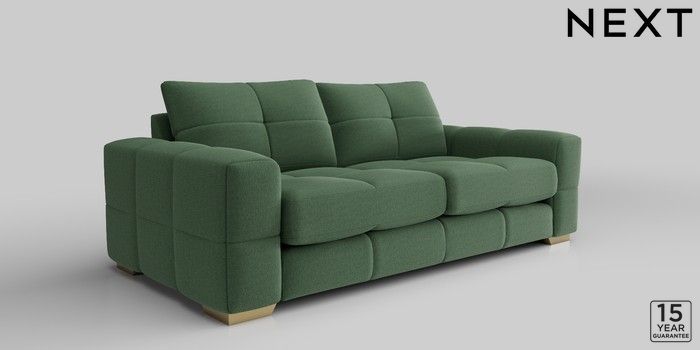 7.2.10 Brooke Deep Sit 3 Seater Sofa Relaxed Linen Look Dark Green Large Square Angle - Brushed Brass | Made Click here to use our website with more accessibility support, for example screen readers
