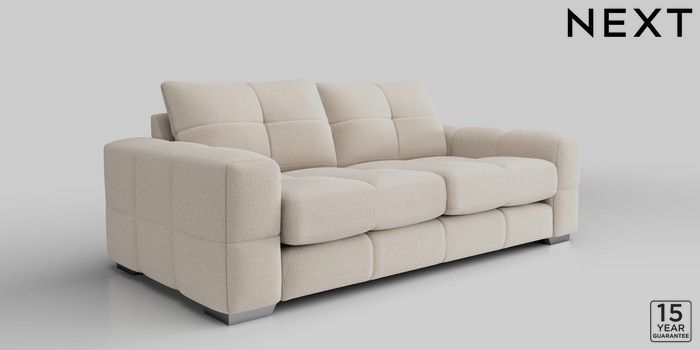 7.2.10 Brooke Deep Sit 3 Seater Sofa Studio Chenille Oyster Large Square Angle - Chrome Metal | Made Click here to use our website with more accessibility support, for example screen readers