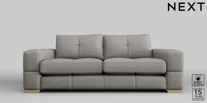 7.2.10 Brooke Deep Sit 3 Seater Sofa Woven Chenille Easy Clean Light Grey Large Square Angle - Brushed Brass | Made Click here to use our website with more accessibility support, for example screen readers